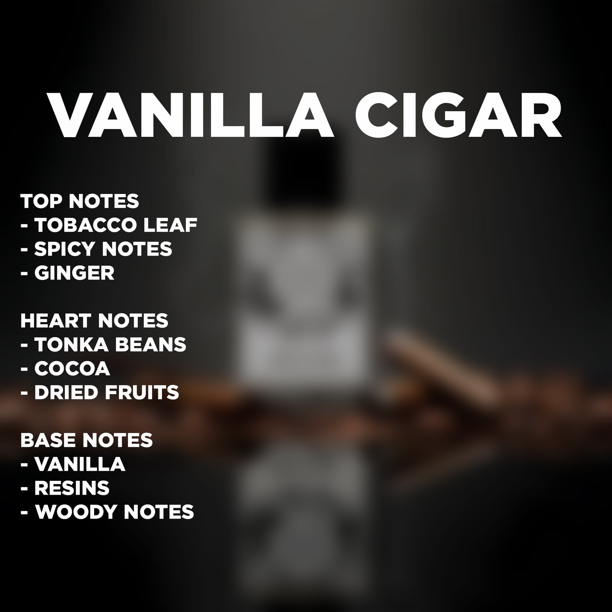 Vanilla Cigar opens with the smoky curl of tobacco lifted by a spark of spice, creating an atmosphere that feels bold from the very first breath. There’s a warmth to it, rich and slightly gritty, like the glowing ember at the end of a hand-rolled cigar. As it moves into the heart, the mood softens into something smoother and more indulgent. Tonka and cocoa blend into a dark, velvety sweetness, while dried fruits add a subtle richness that feels almost edible, like a hidden layer of depth beneath the smoke. The dry-down melts into a gentle warmth where vanilla swirls through resinous and woody tones, settling into a smooth, lingering haze. Vanilla Cigar finishes with a quiet confidence, leaving behind a comforting yet undeniably magnetic trail.